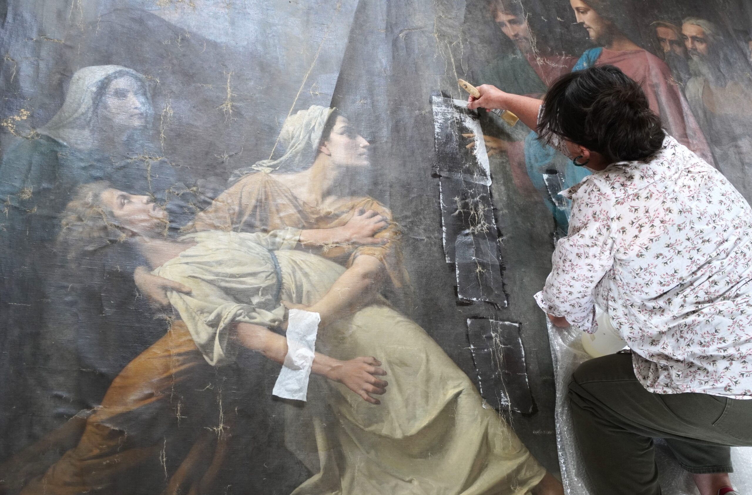 Inscrite au titre des monuments historiques, La Cananéenne oubliée du peintre François Grellet, a refait surface à Saint-Rémy-en-Mauges. Cette toile du XIXe siècle a entamé sa restauration.