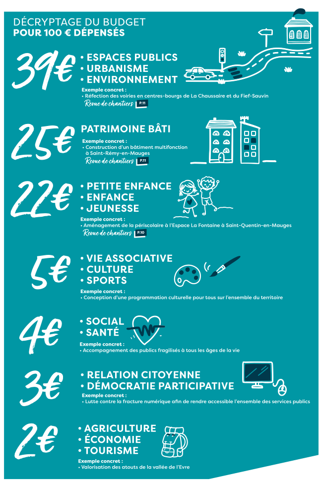« Avec une enveloppe en fonctionnement de 18 millions d’euros, la commune se donne les moyens de préserver l’offre et la qualité des services qui se sont étoffés l’an dernier (cours de natation en milieu scolaire, recrutement d’un second policier municipal, déploiement de la liaison chaude en restauration scolaire…).